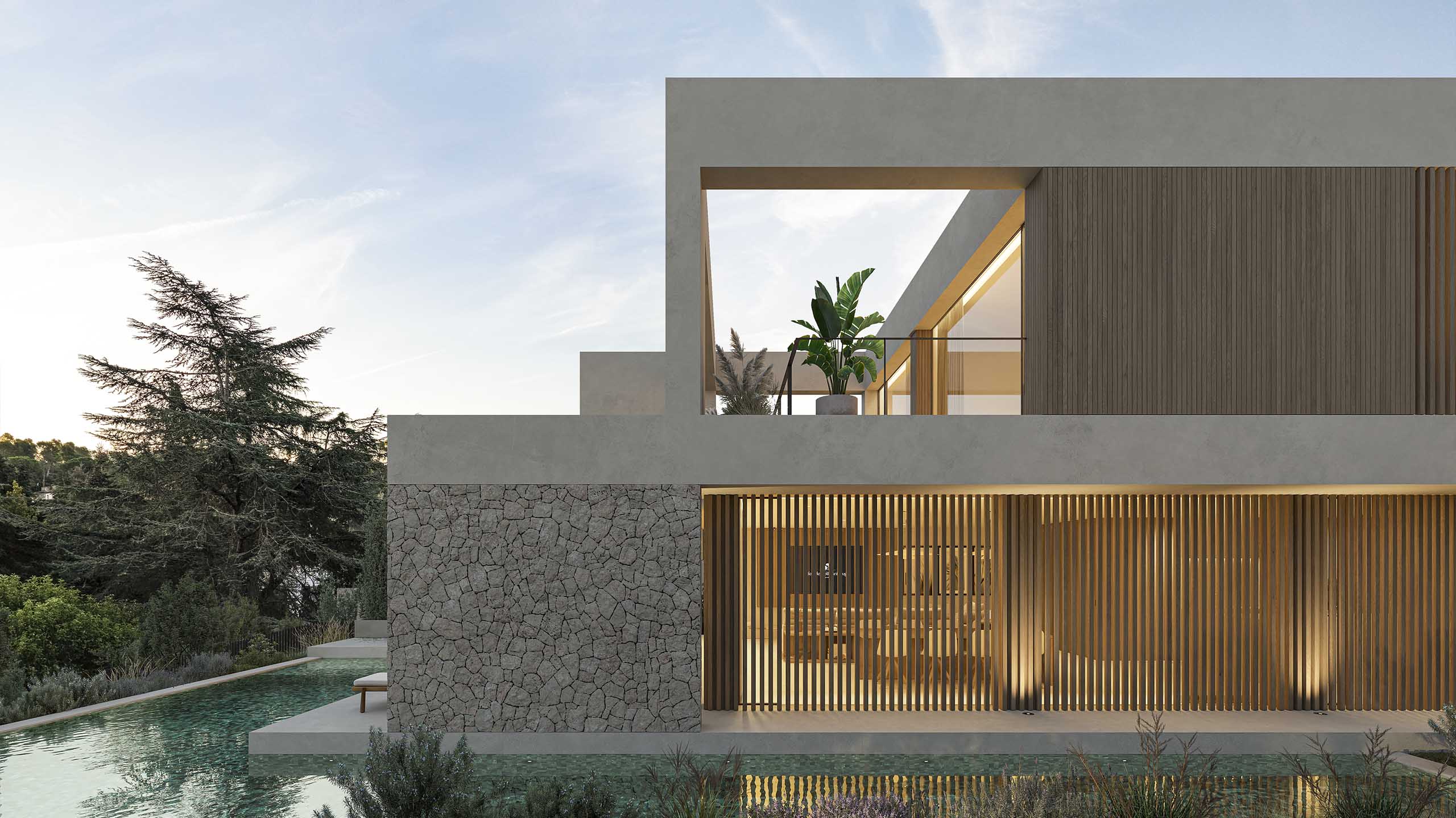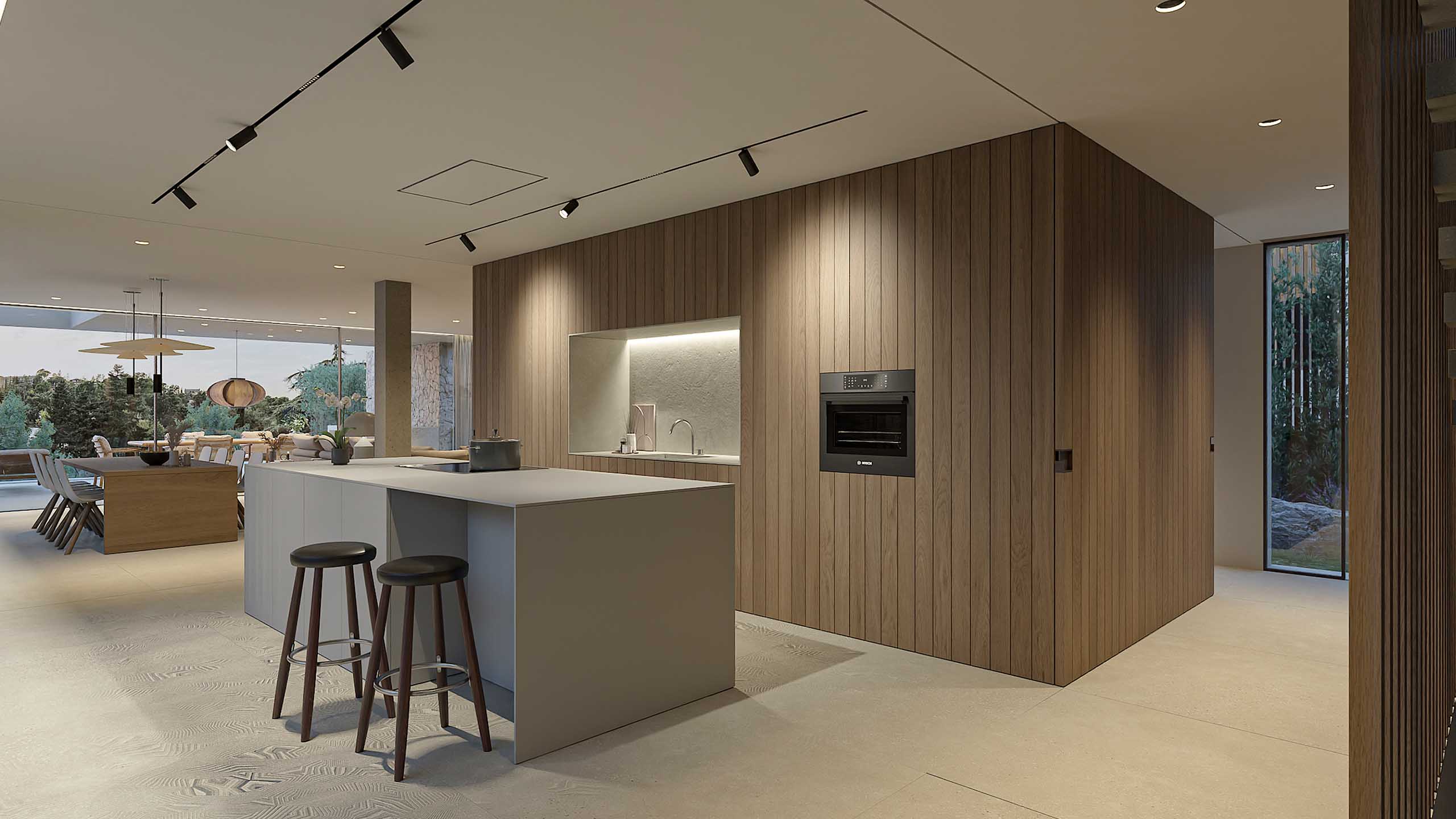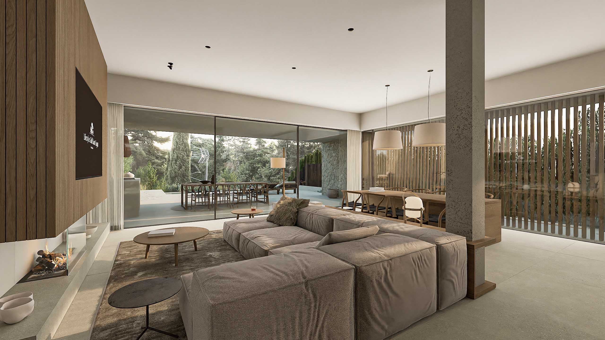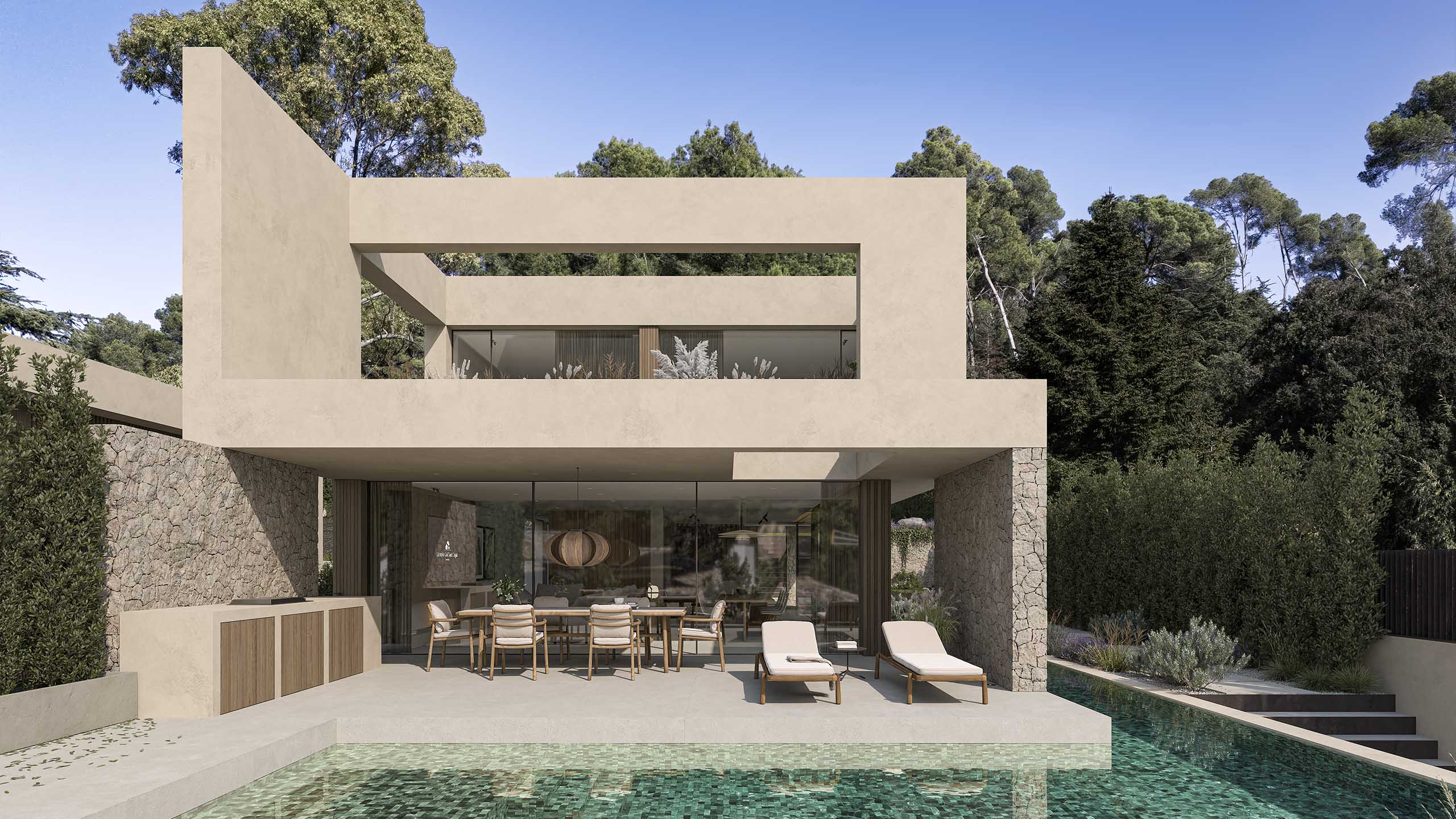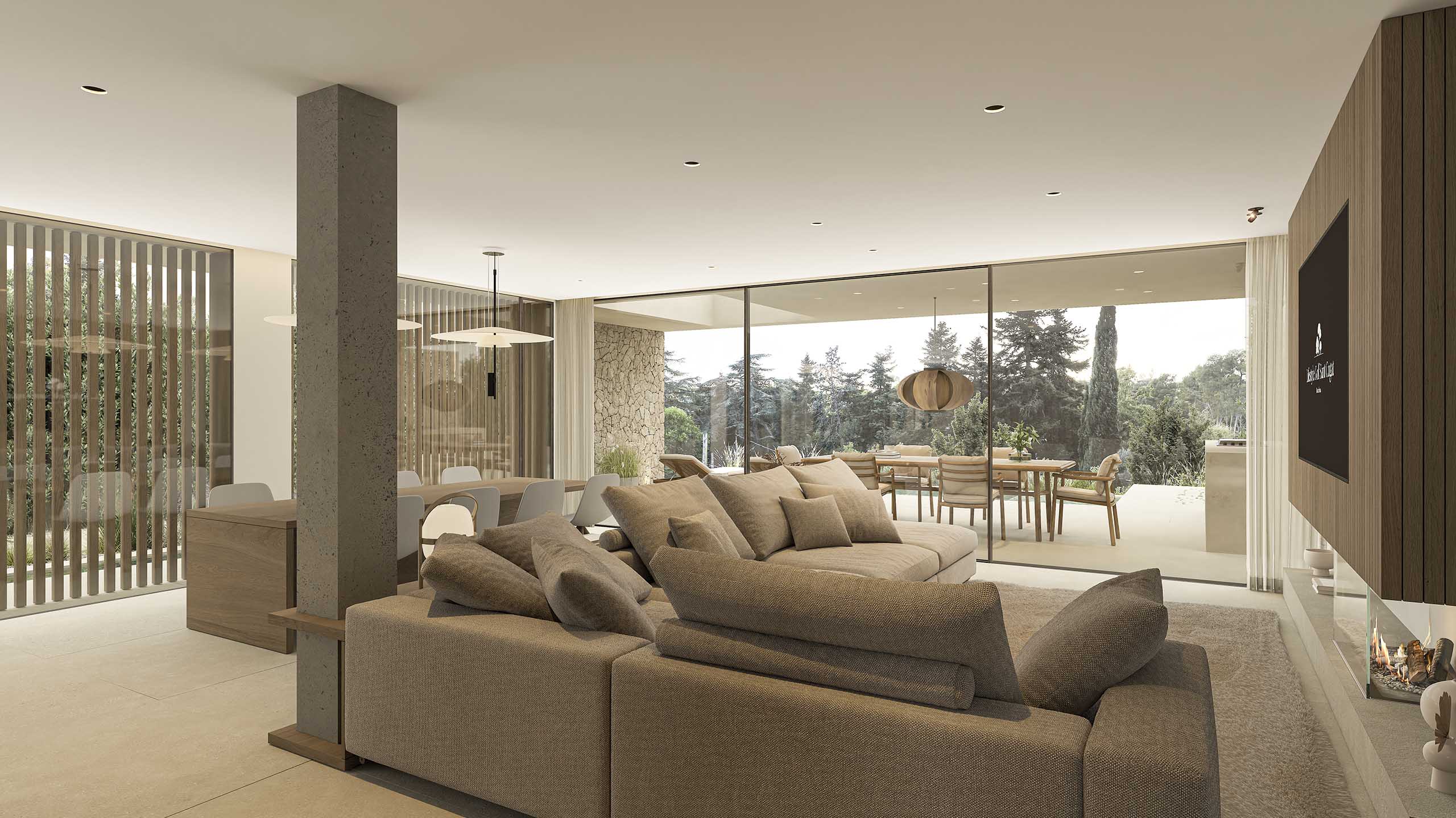 Villa Bosque se erige sobre una parcela de 900 m², desplegando sus 484,82 m² construidos en tres niveles en continuo diálogo con el entorno. Ofrece vistas cálidas al campo de golf. La arquitectura se abre al exterior con grandes ventanales que permiten que la luz y el paisaje se conviertan en parte de la vida cotidiana.